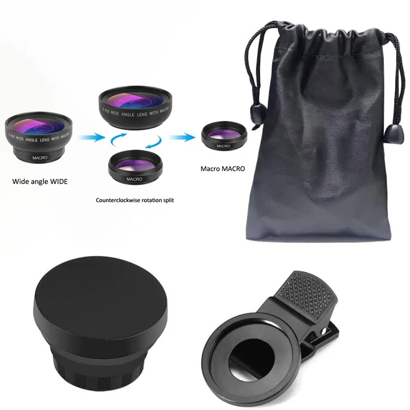 ◆ 1.) 2 in 1 Professional HD Cell Phone Camera Lens Kit, Turn your mobile into DSLR Camera!! PACKAGE CONTENTS : 37mm 0.45X 49UV Wide Angle Lens, Macro Lens, 1 * Universal Clip, 1 * Top Lens Cover, 1*Bottom Lens Cover,1*Carrying Pouch.