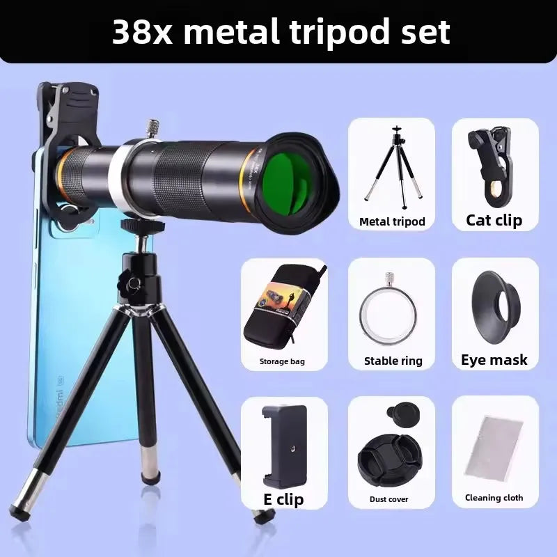 38X Mobile Phone Telephoto Lens 4k High Definition Telescope Outdoor Fishing Live Concert Universal Shooting Artifact