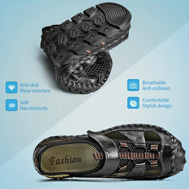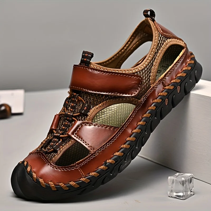 Men's Summer Closed Toe Hiking Sandals, Comfy Breathe Splicing Mesh Non-Slip Softsole Outdoor Travel Beach Shoes